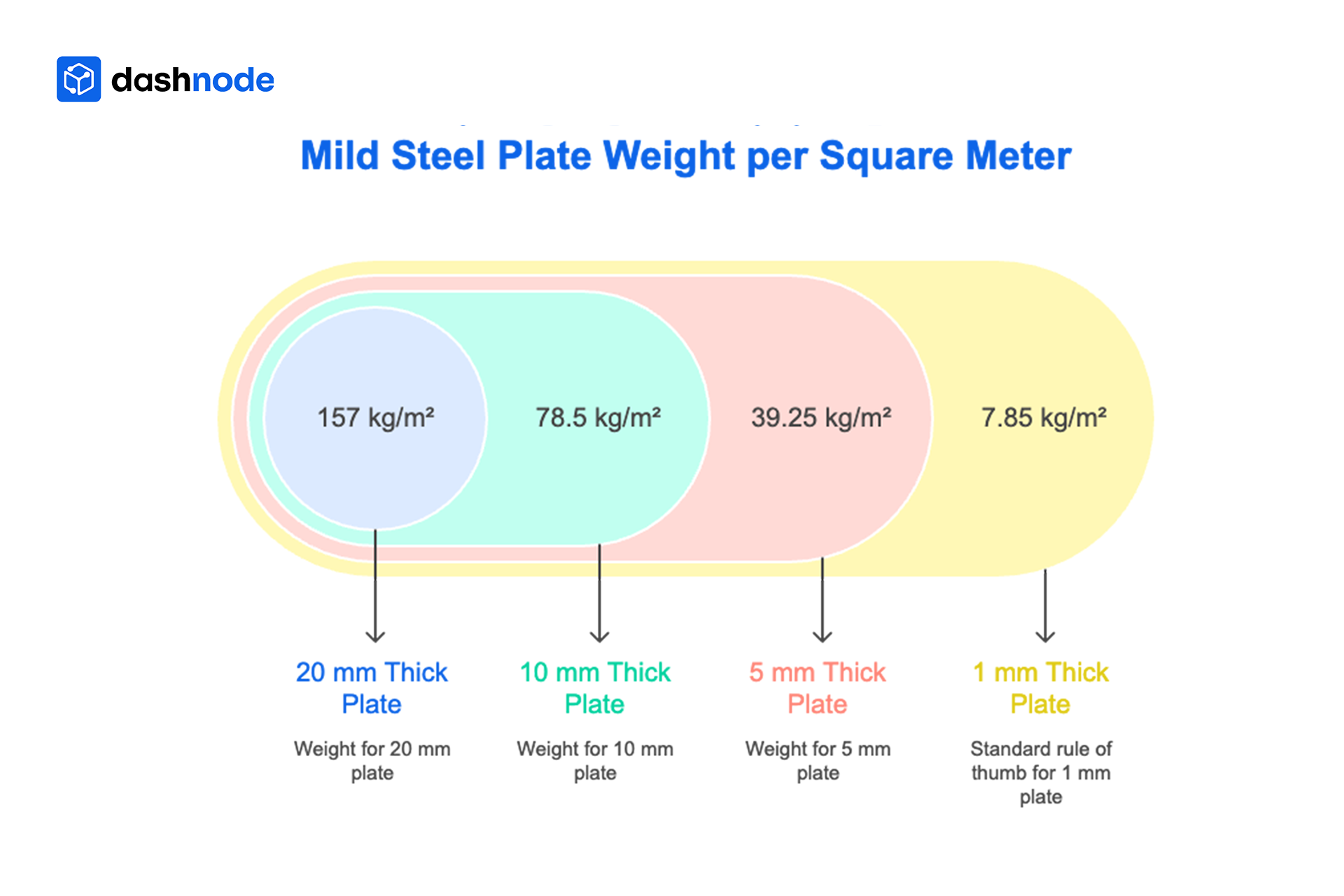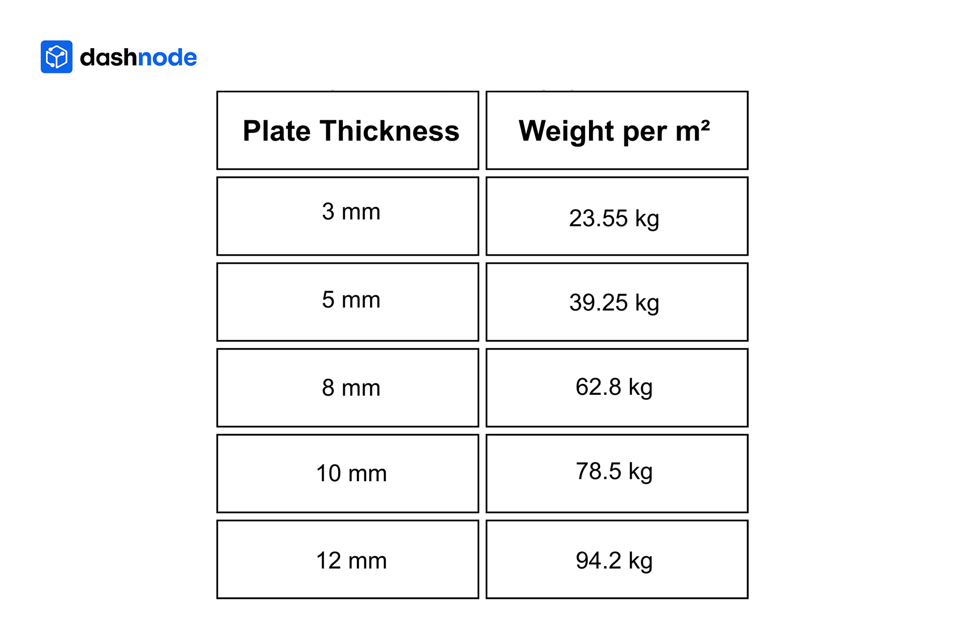 1 mm thick mild steel plate ≈ 7.85 kg per square metre