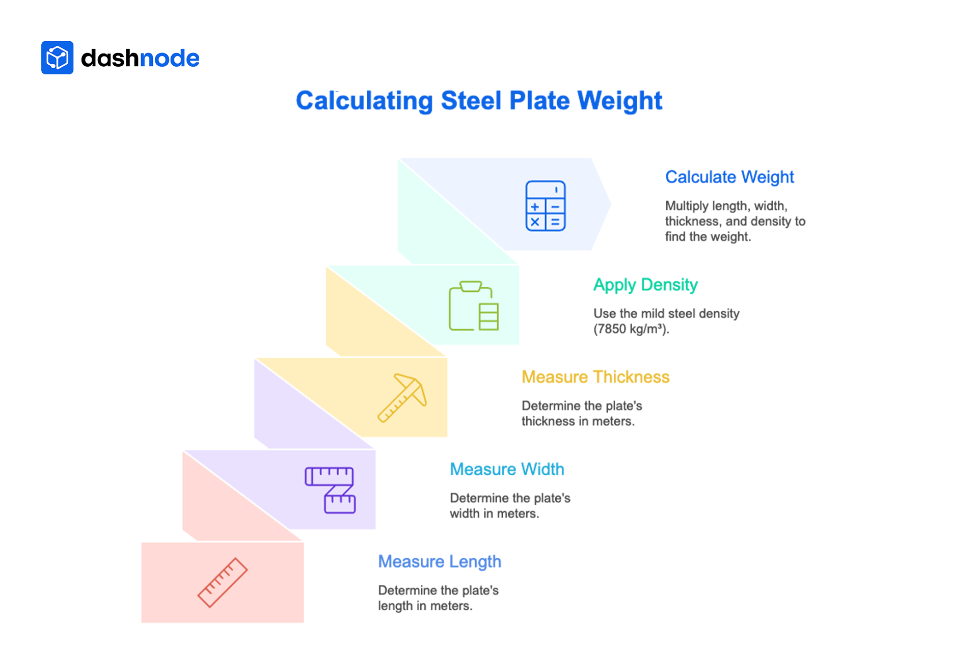 Steel plate weight depends on its length, width, and thickness. Since the density of mild steel is constant, any change in these dimensions directly affects the total weight of the plate.