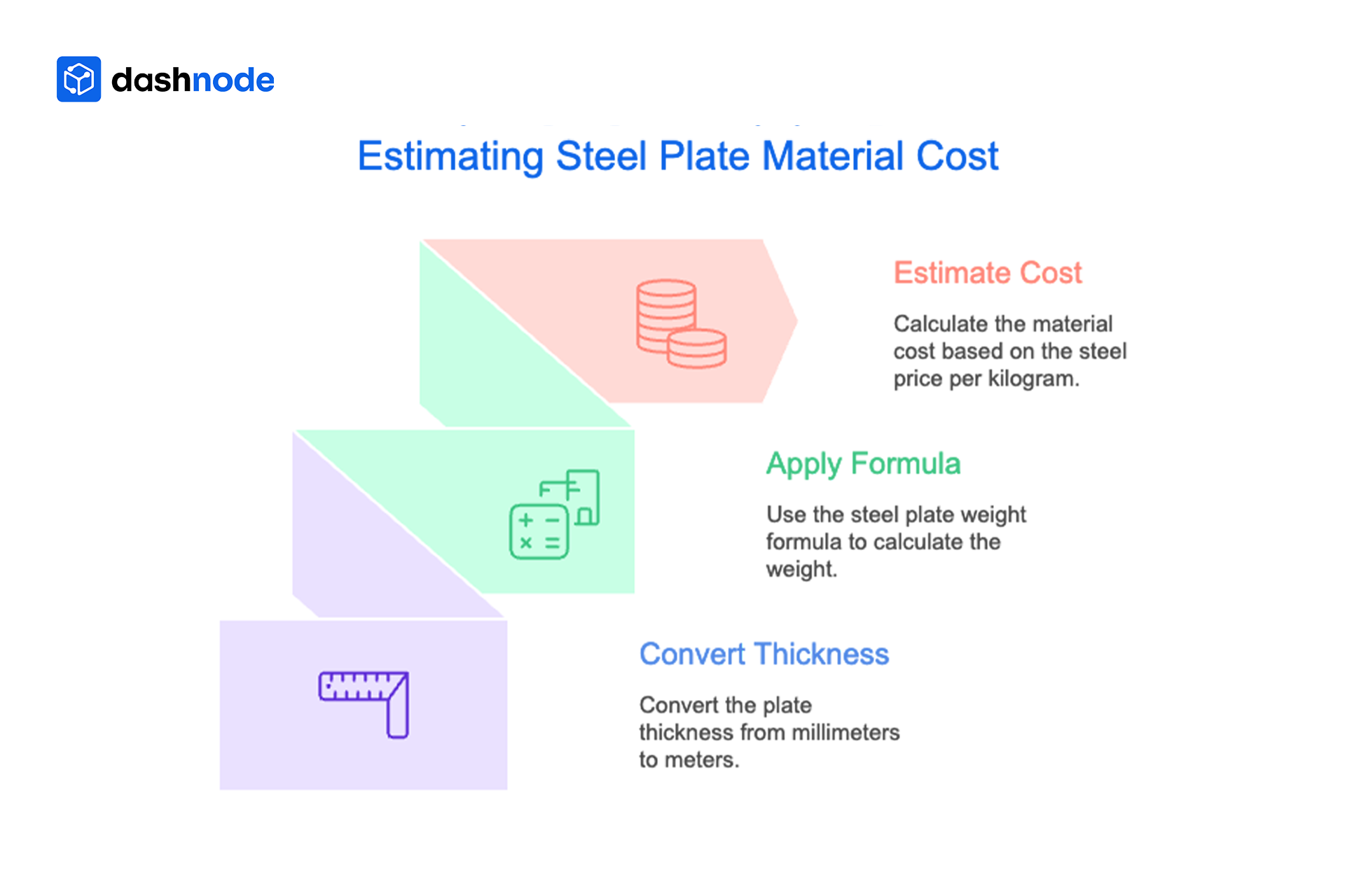 This calculation gives fabrication estimators a quick baseline for material cost estimation before quoting a job.