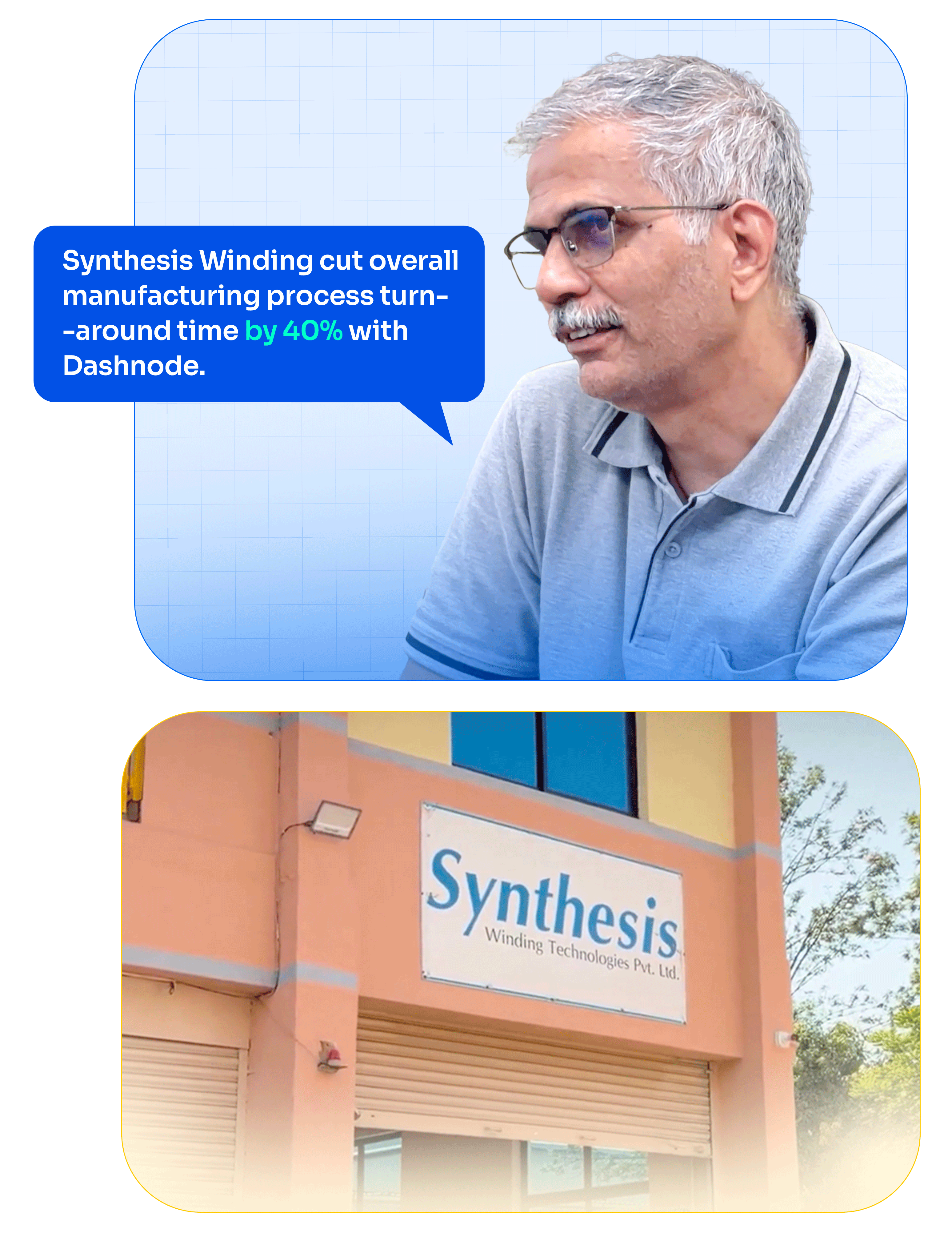 Synthesis Winding Technologies is a Bengaluru-based manufacturer with 30+ years of experience. Despite their scale, their costing process relied on manual Excel sheets — taking 2–3 hours per part and causing delays in responding to urgent RFQs. With Dashnode, they went from hours to minutes, cutting quoting turnaround time by over 40%.