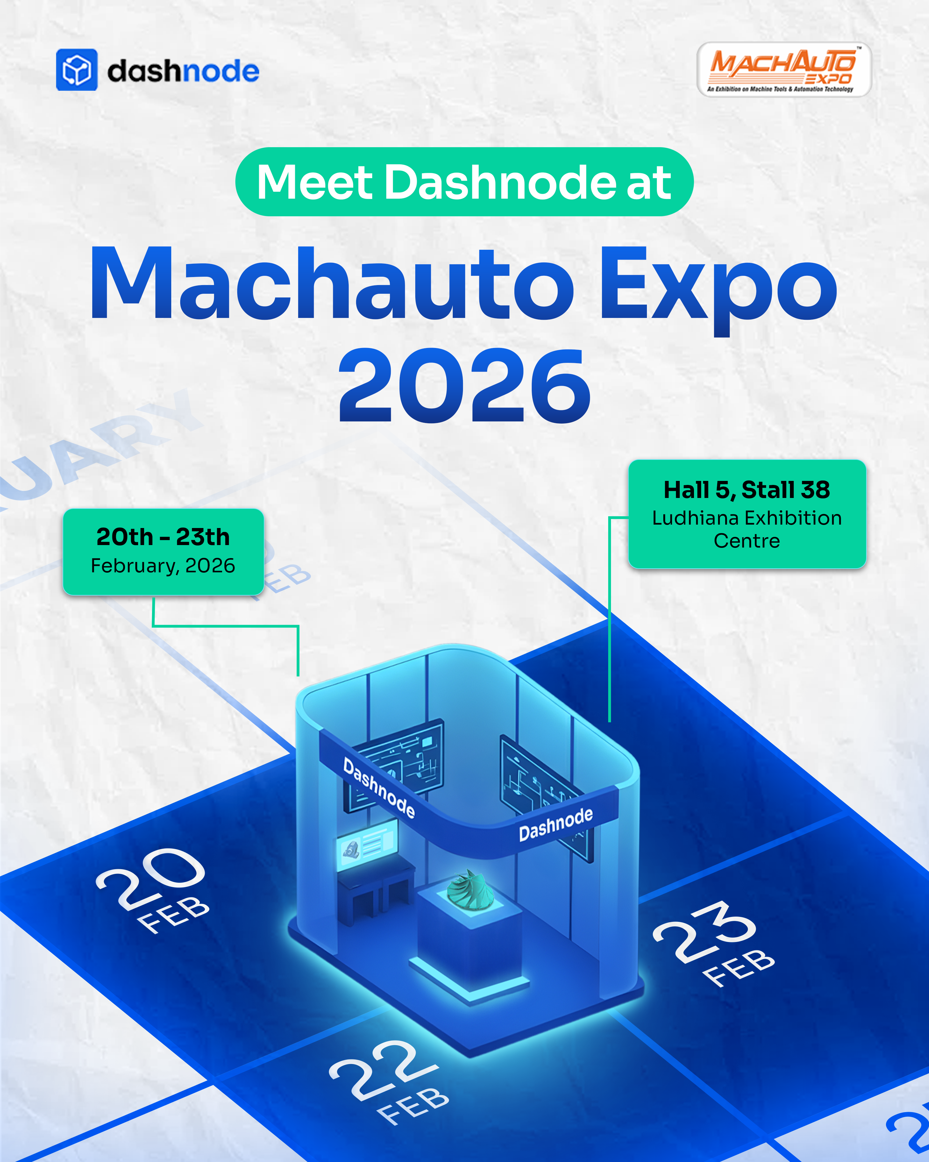 Dashnode will be participating in Mach Auto Expo 2026, one of India’s largest exhibitions for machine tools and automation technology, bringing together leading manufacturers and industrial innovators under one roof.