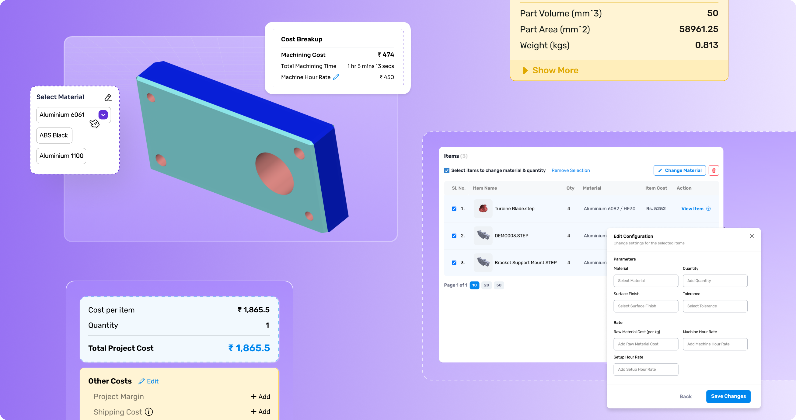 Book a demo. Upload a part. Walk away with real costs using our AI-powered CNC costing and manufacturing estimating software.