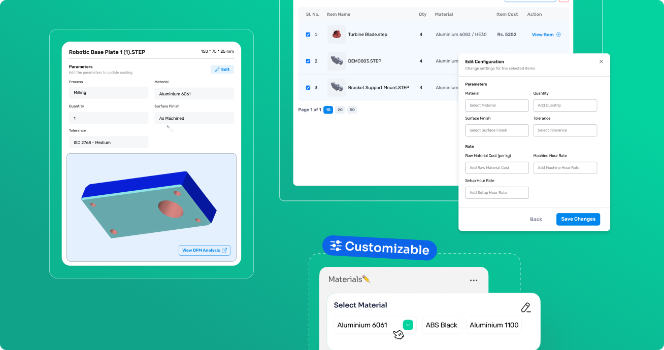 AI-powered CNC costing built for robotics part manufacturers. Generate quotes faster, optimize precision parts, and stay competitive — all with tight cost control